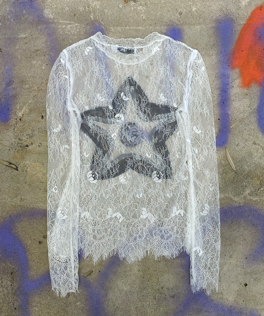 One-of-a-Kind Ghost Star Tee Black & White Lace (Fits XS-S)