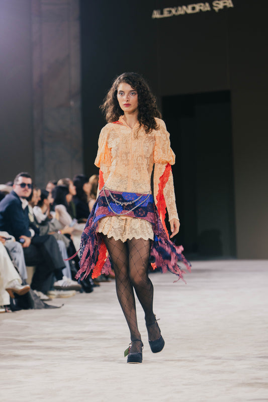 She is currently based in Bucharest, Romania, focused on exploring the potentials of lace through the lens of eastern european joy, within a conscious production framework. Șipa's work has been featured in magazines VOGUE, L'Officiel, Vanity Fair, 10Magazine, TheSundayTimesStyle, TANK, 9/10, GQ, PussPuss and has been embraced by artists including Charli XCX, Rose Gray, Shygirl, Louise Follain, and Kate Nash, among others.