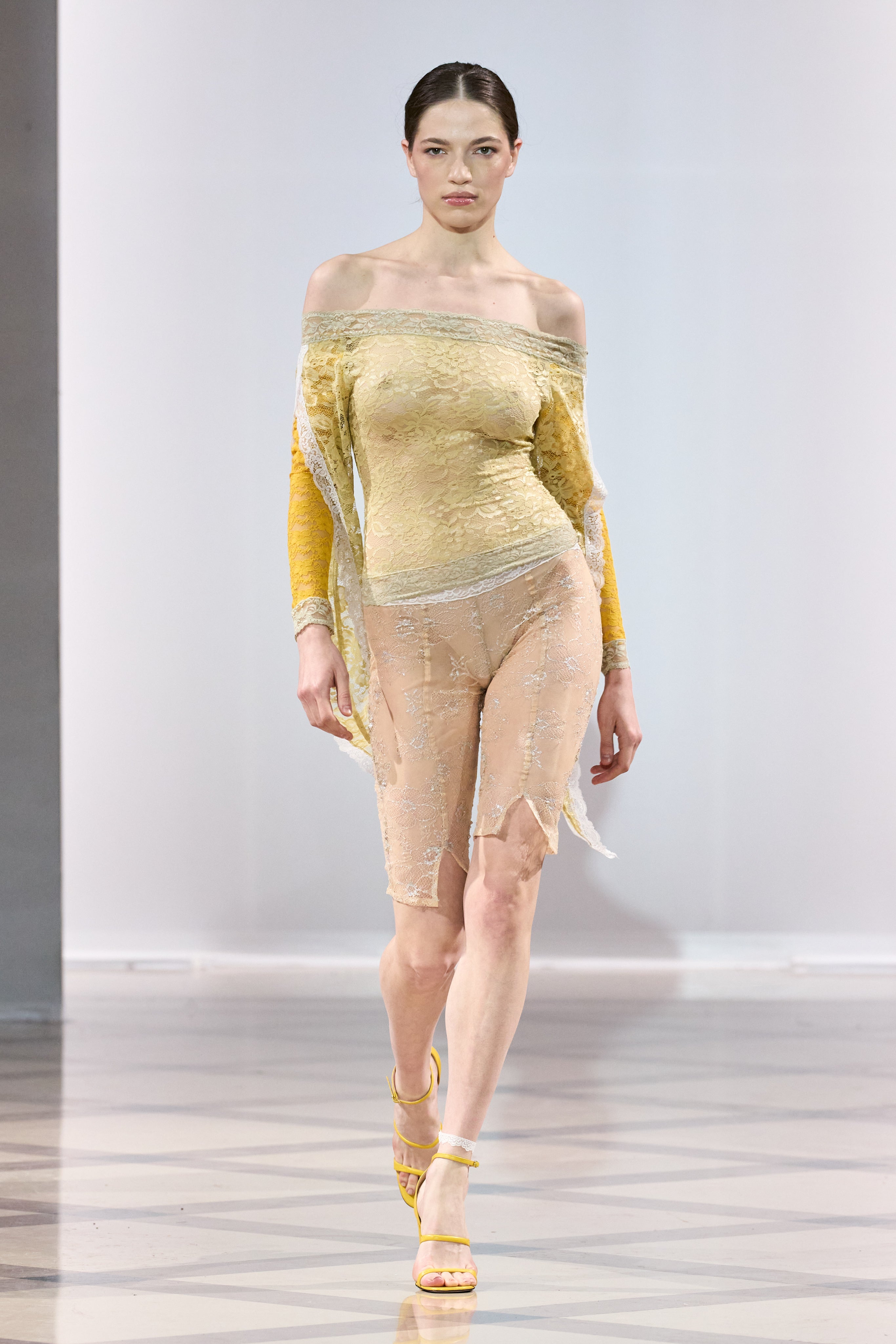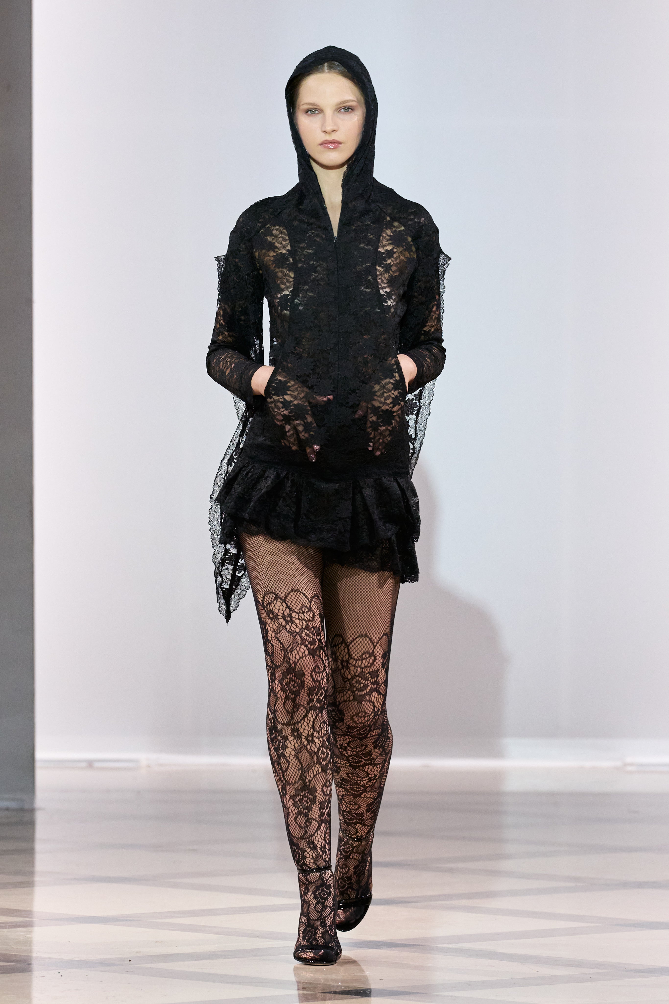 collection combines elements of ultra sexuality with a deep sense of history and memories. Across eighteen looks, we explore new ways to manipulate and transform lace, distorting and stretching the material beyond its traditional limits.