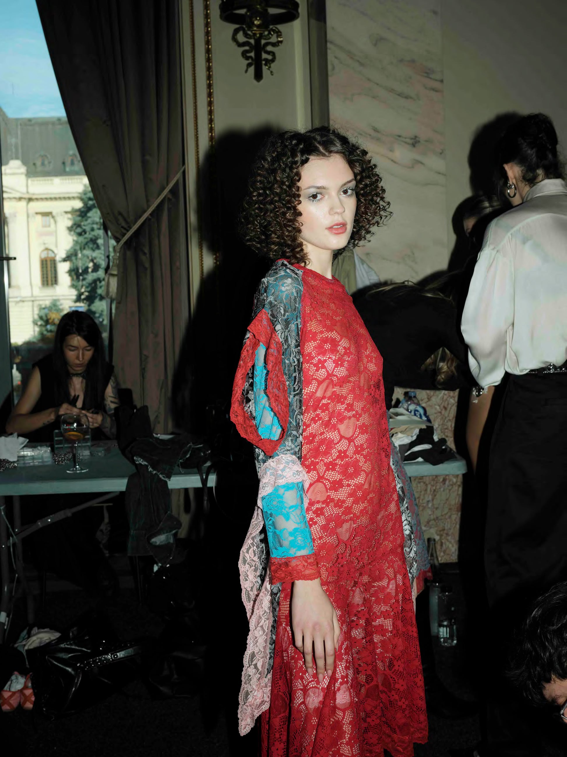 Lace trim all over.